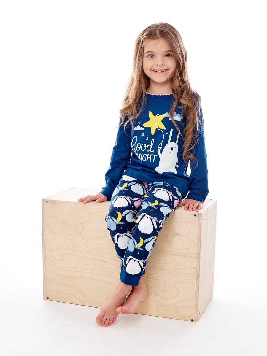 Пижама для девочки Umka, хлопок, размер 134, синяя с рисунком "Спокойной ночи"