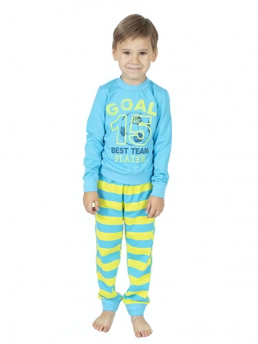 Пижама для мальчика Basia "GOAL 15", 100% хлопок, размер 116-60, полоса+св.бирюза