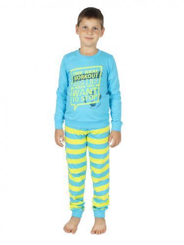 Пижама детская для мальчика 128-64, хлопок 100%, полосатый низ, бирюзовый верх