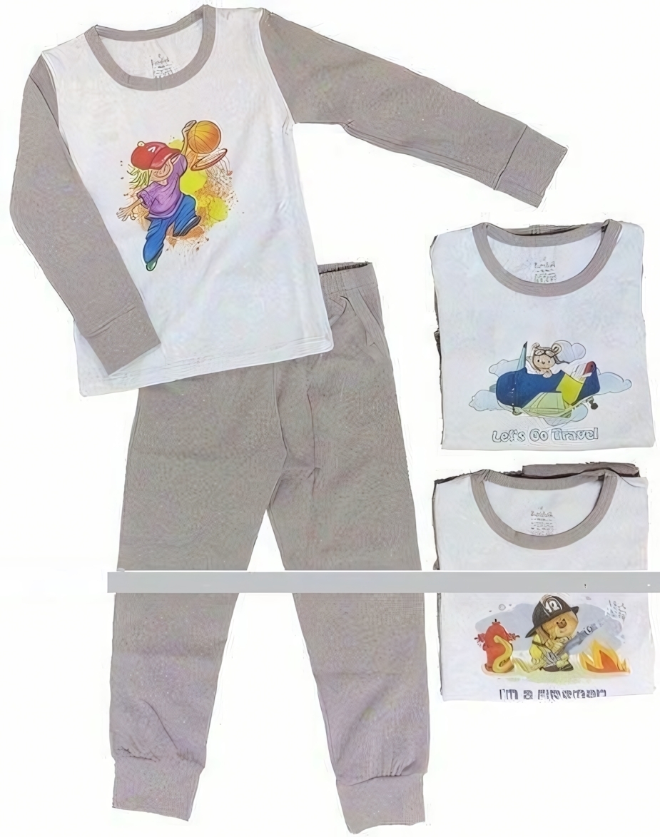 Пижамный комплект Bambak создан для активных мальчиков, которые ценят уют и свободу движений. Яркие тематические принты с баскетбольной тематикой и пожарным медведем превратят отход ко сну в долгожданное приключение.