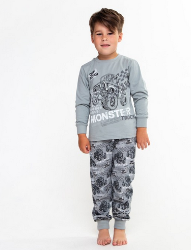 Пижама для мальчика Luneva, комфортный хлопок, принт Monster Trucks, серый, размер 110