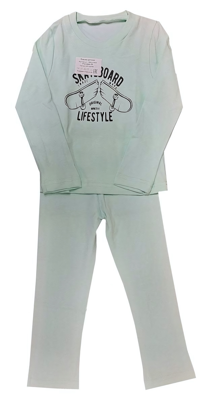 Пижама для мальчиков 'Скейтборд' 100% хлопок, размер 32, мятный