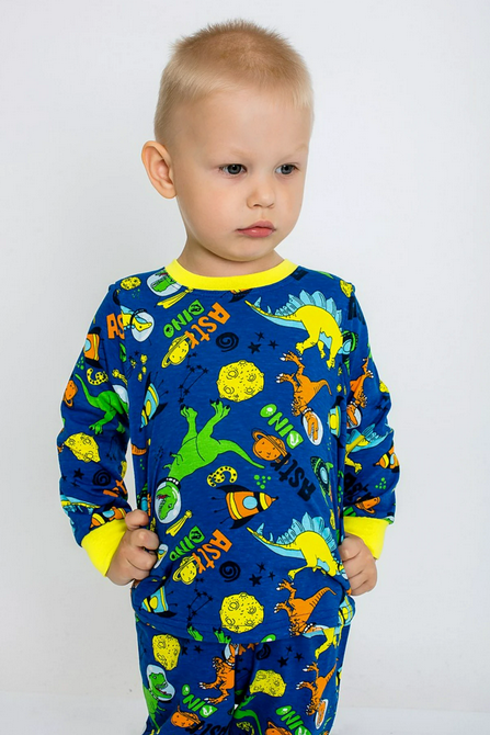 Пижама детская "Эльф-19" Ивашка, синяя с динозаврами, хлопок, размер 116 – комфортный сон