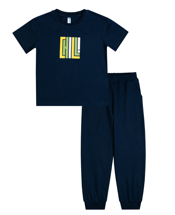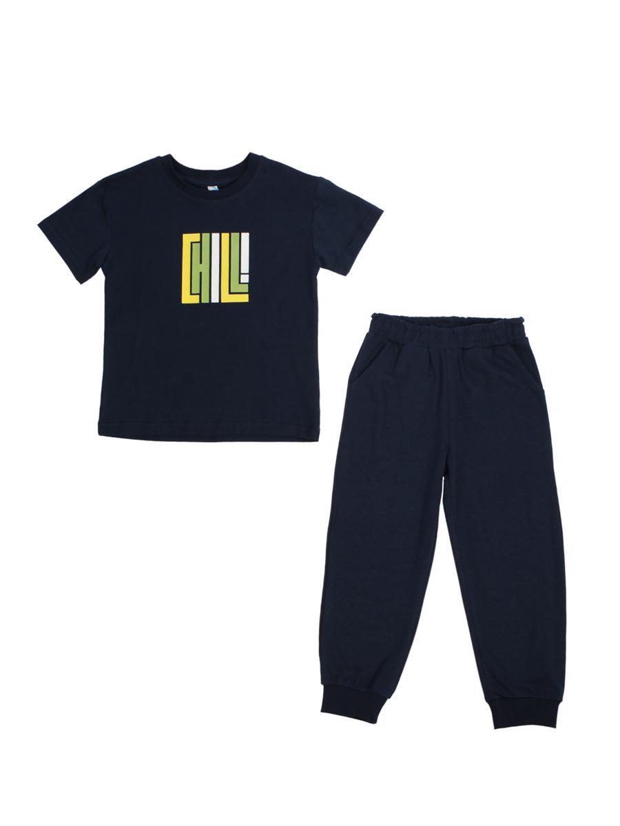 Пижама для мальчика р.122 темно-синий, хлопок, принт 'CHILL!'