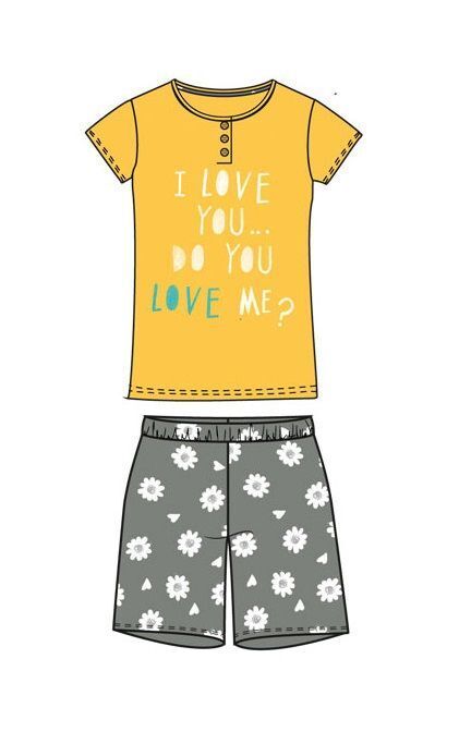 Пижама Sunflower — это идеальный выбор для тех, кто ценит комфорт и стиль в домашней одежде. Изготовленная из 100% хлопка, она обеспечивает приятные ощущения на коже и позволяет свободно двигаться. Яркий желтый цвет и оригинальный дизайн с надписью «I LOVE YOU... DO YOU LOVE ME?» добавляют игривости и настроения в ваш день.