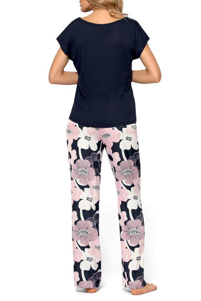 Пижамный комплект Bianca из вискозного полотна — это идеальное решение для тех, кто ценит комфорт и стиль в домашней одежде. Этот комплект подарит вам ощущение легкости и свободы, позволяя расслабиться после долгого дня. Темно-синий цвет топа и цветочный принт на брюках создают гармоничный и привлекательный образ, который подойдет для уютных вечеров дома.