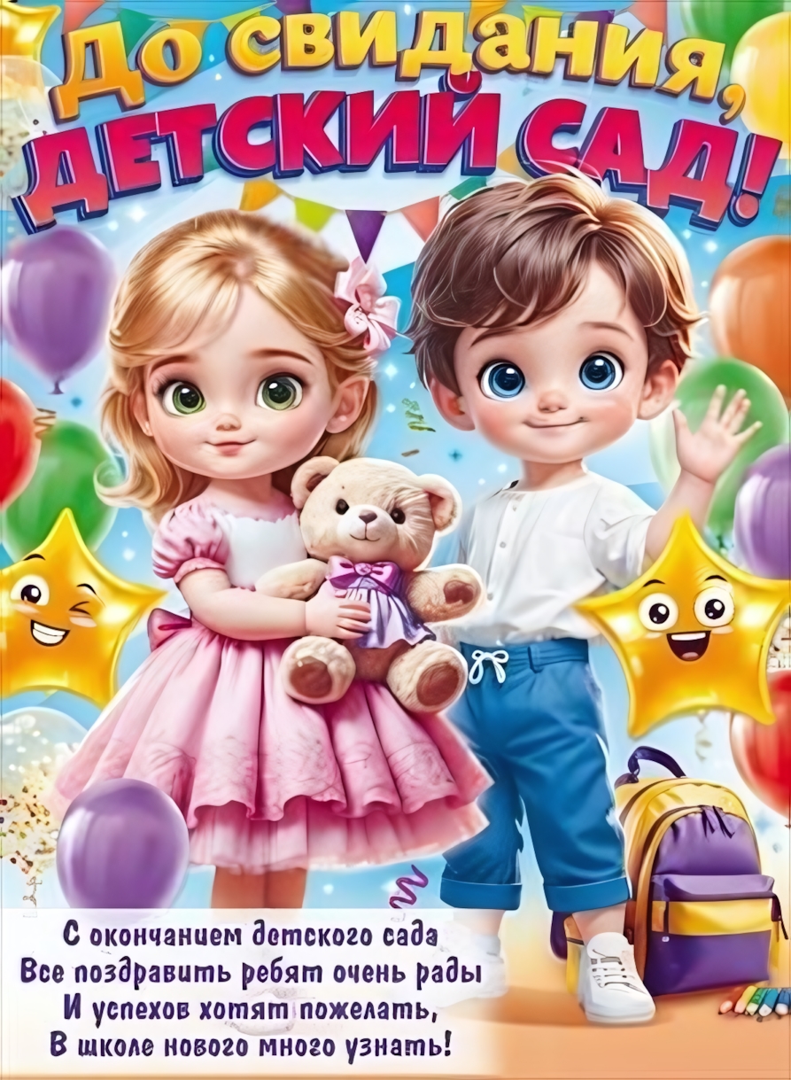 Плакат оформительский А2 «До свидания, детский сад!», дизайн с детьми и шарами