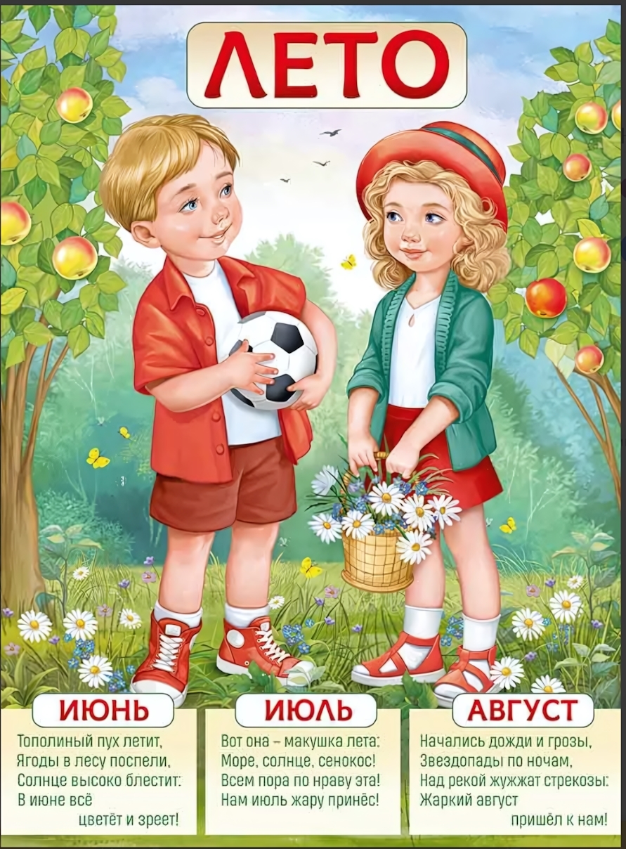 Плакат А2 "Лето", обучающий, картон, 600х440мм, для оформления класса или детской