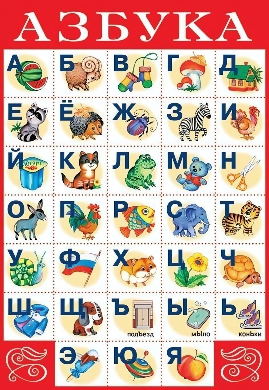 - Развитие речи: Плакат помогает ребенку научиться определять первый звук в слове и правильно произносить буквы.