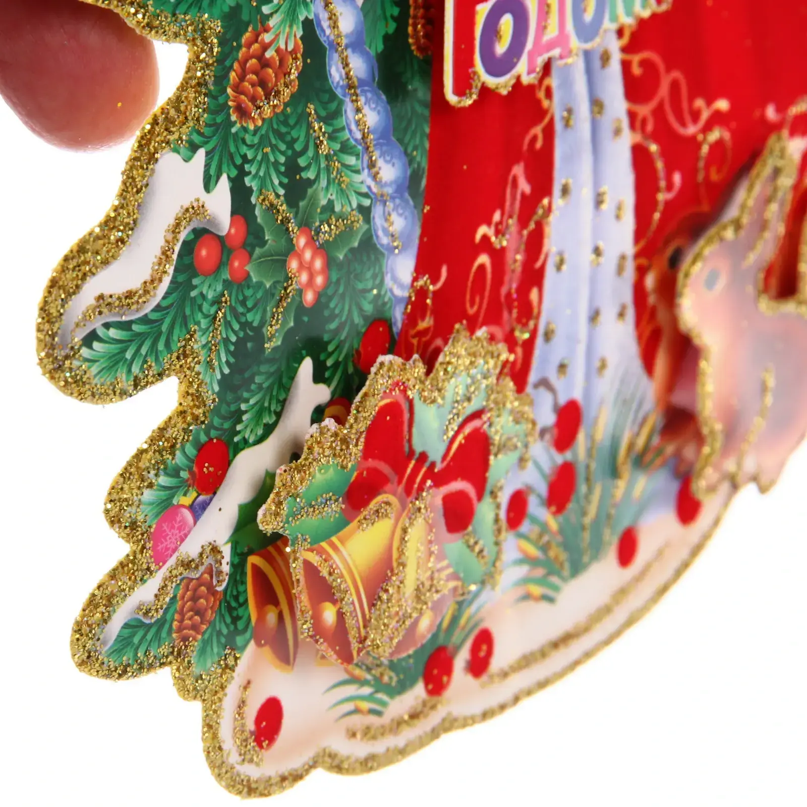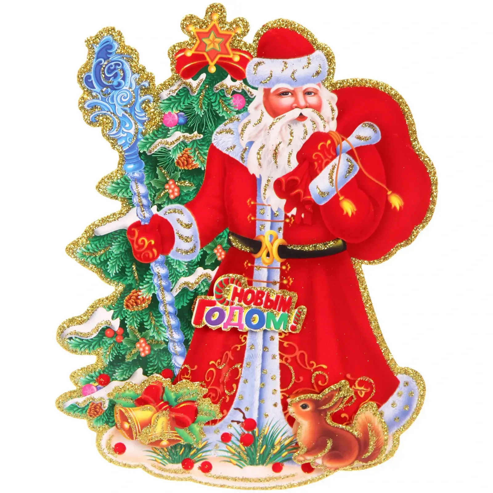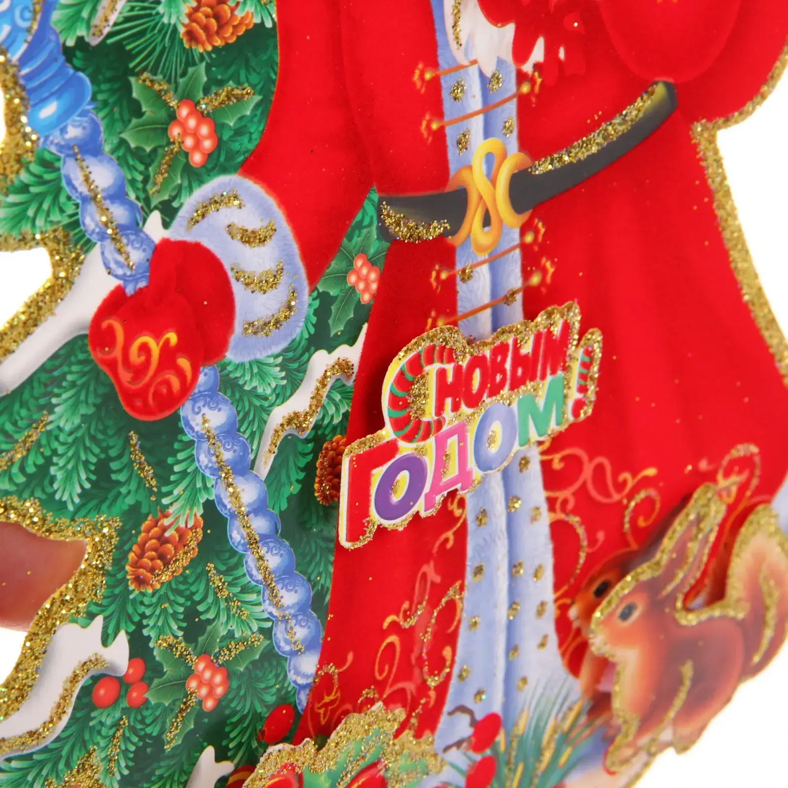Плакат 'Дед Мороз с подарками', 23 см, бумага, красный/золотой