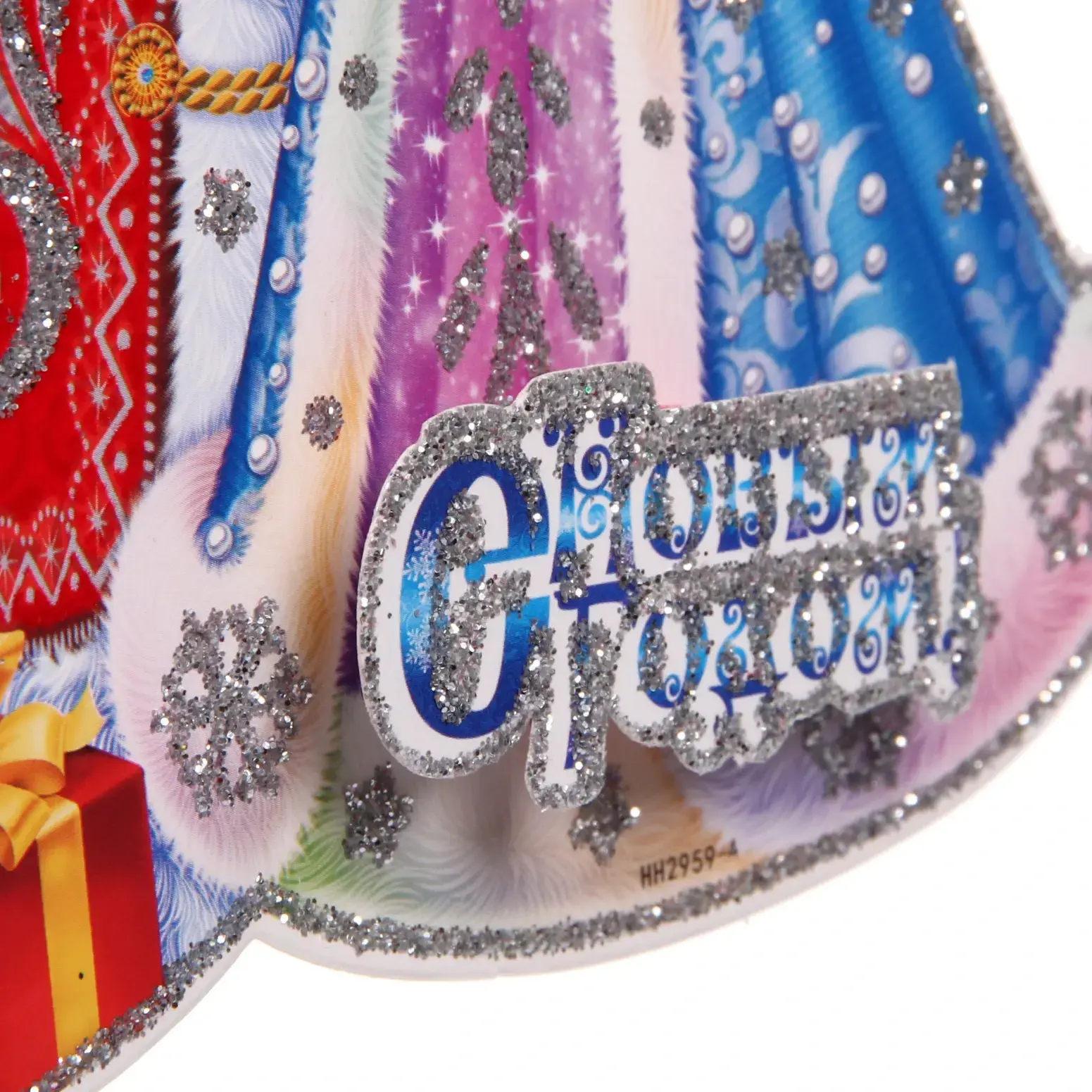 Плакат новогодний 'Дед Мороз с внучкой', 25см, на бумаге, с блестками