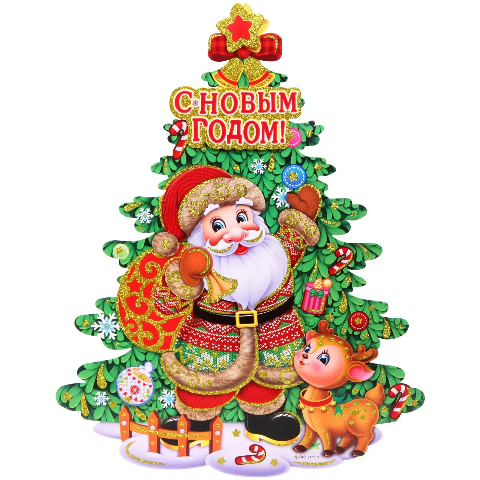 Плакат новогодний "Дедушка у ёлочки", 40см, бумага, яркий декор
