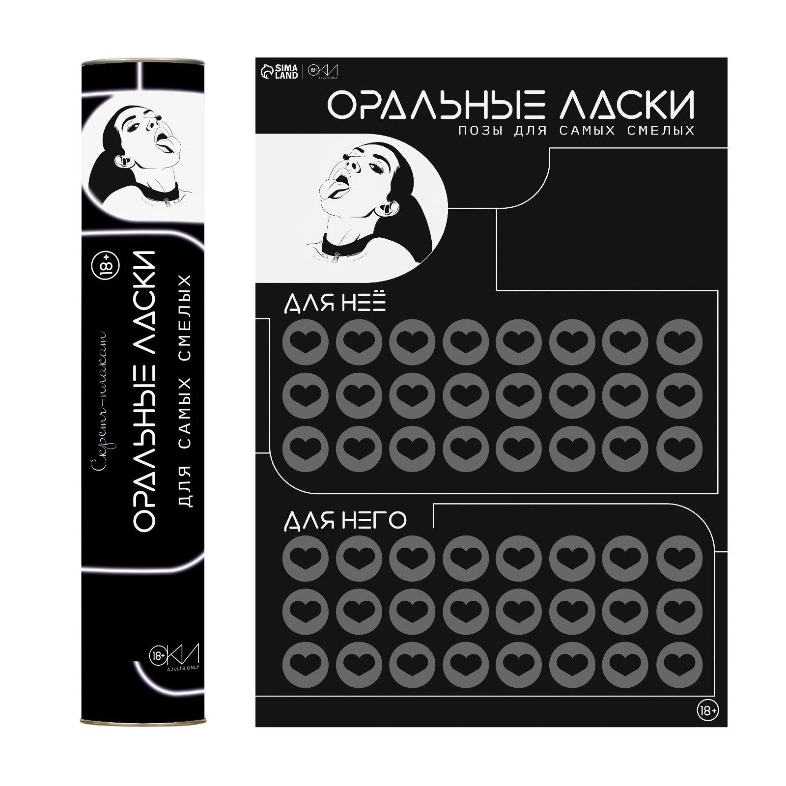 Скретч-плакат «Оральные ласки» А3 для двоих, черный: 72 позы в подарочном тубусе