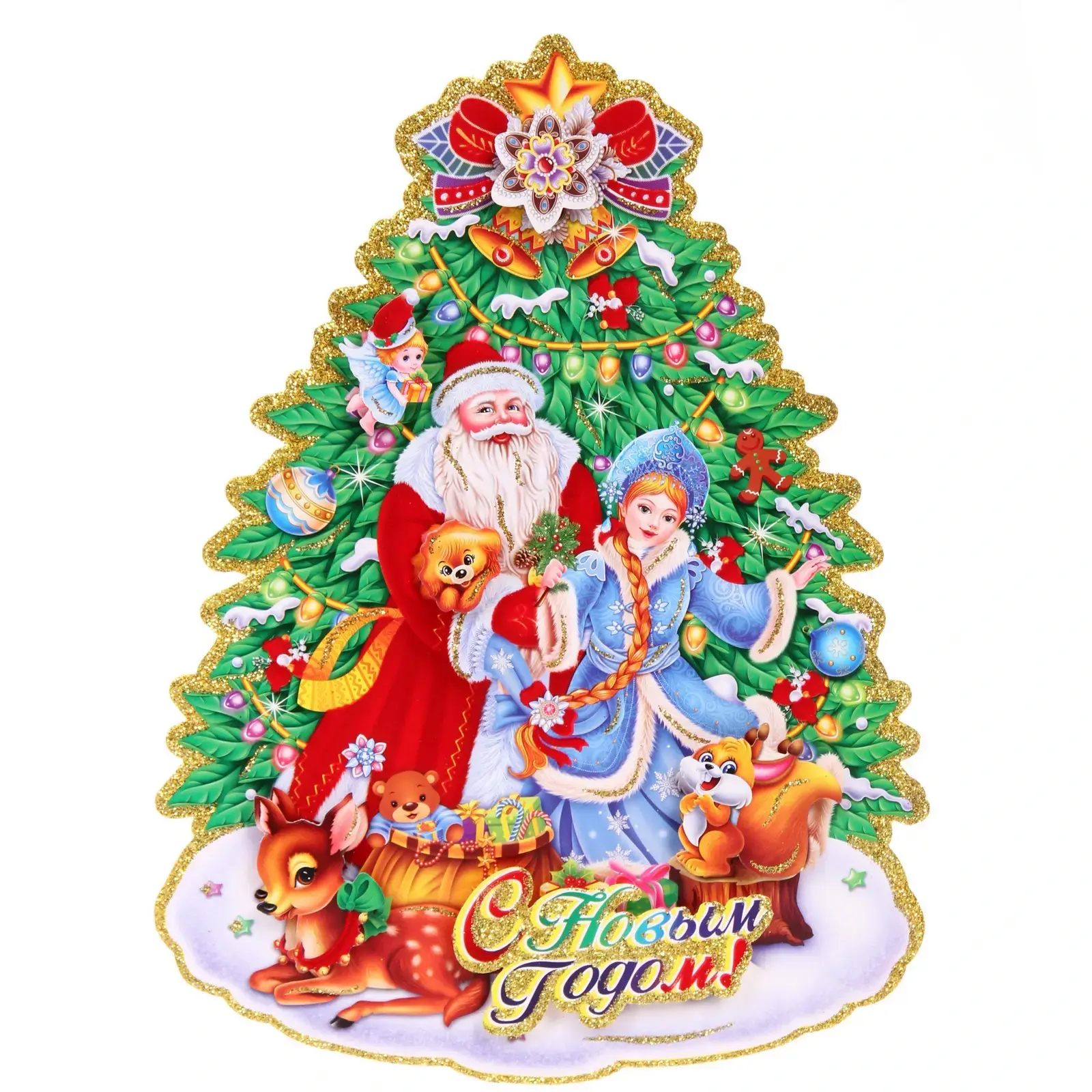 Плакат «Елка» 33см, новогодний декор с блестящими элементами