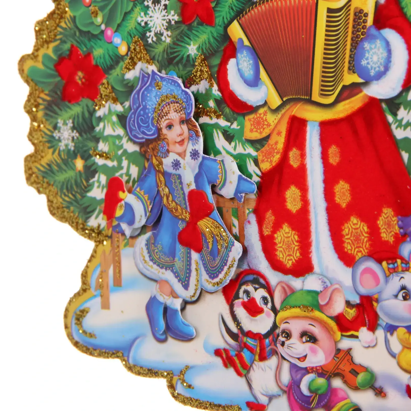 Размер плаката составляет 23 см, что делает его компактным и удобным для размещения в любом интерьере. Яркие изображения новогодних персонажей и праздничные элементы создают атмосферу веселья и радости, что делает его идеальным выбором для новогодних праздников.