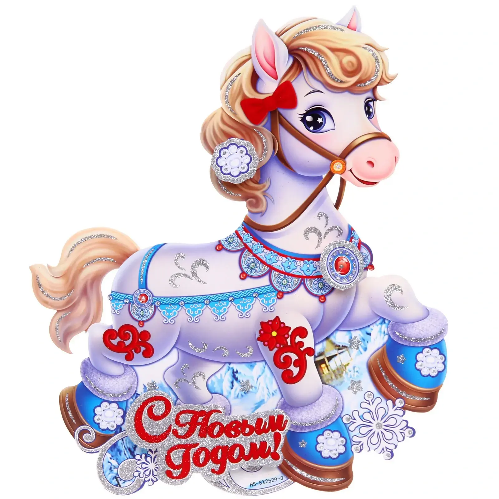 Плакат "Лошадка" 28х23см, праздничный декор с блестками и узорами