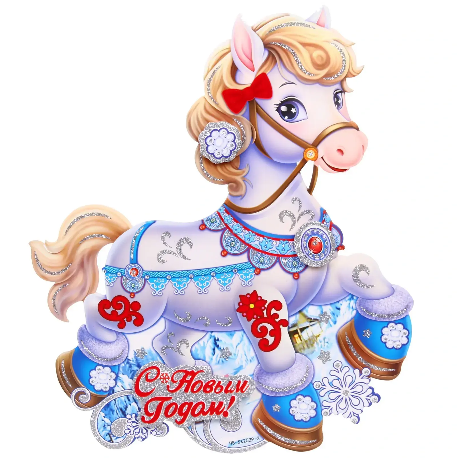 Плакат новогодний "Лошадка" 40*30 см, бумага, праздничный декор