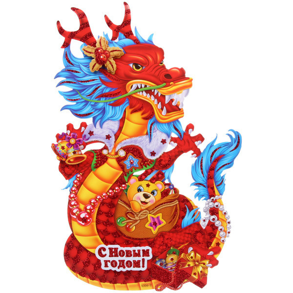 Почему стоит выбрать именно этот плакат? Во-первых, он выполнен из качественного картона, что обеспечивает долговечность и яркость цветов. Во-вторых, его уникальный дизайн с изображением огненного дракона, украшенного звездами и цветами, создает праздничное настроение. Плакат также легко комбинируется с другими новогодними декорациями, что позволяет вам создать гармоничное оформление.