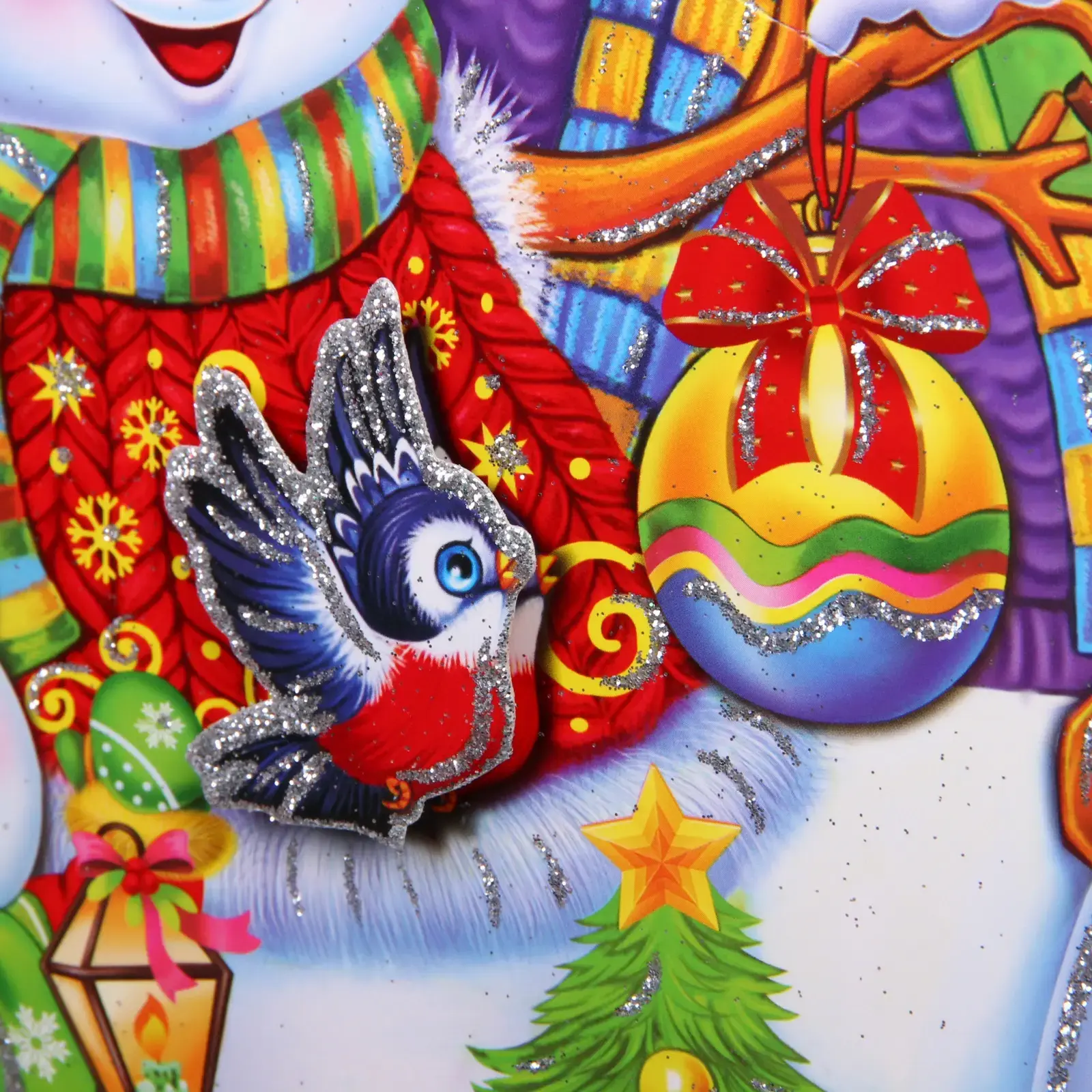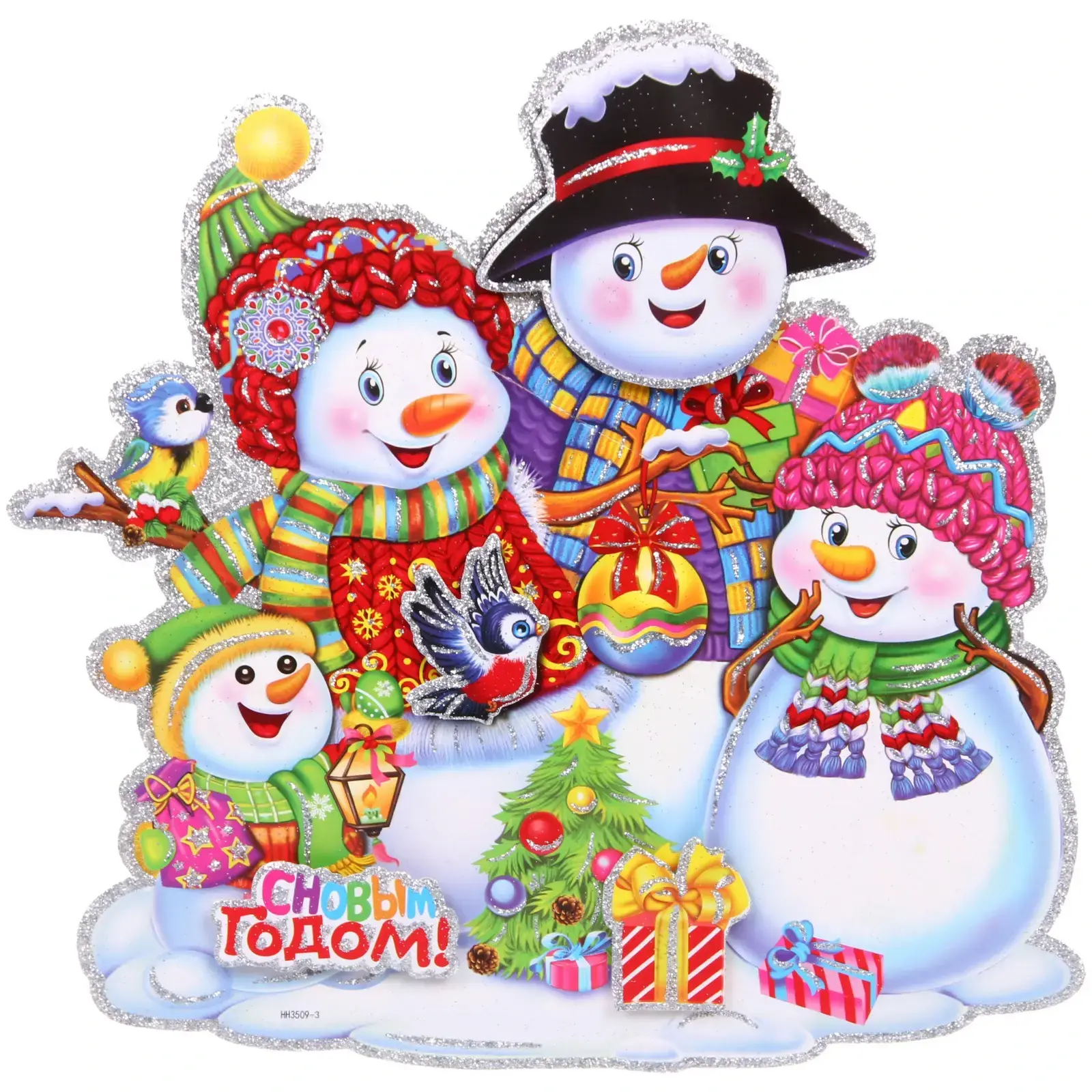 Плакат новогодний «Снеговики» 33х33 см, бумага, яркий декор с праздничной композицией для интерьера