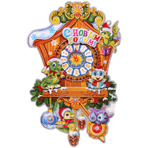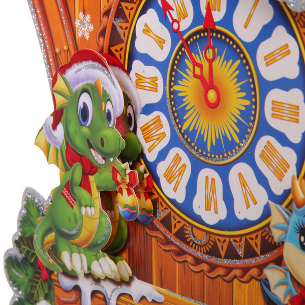 Создайте по-настоящему волшебное новогоднее настроение с помощью эффектного плаката «Волшебные часы» размером 25 см. Эта красочная декорация мгновенно притягивает взгляды ярким дизайном, приглашая взрослых и детей ощутить дух праздника и удивления. Центральное изображение больших нарядных часов с забавными мультяшными персонажами — зелёным драконом, белой совой и фиолетовым героем с подарком — станет оригинальным акцентом новогоднего интерьера.