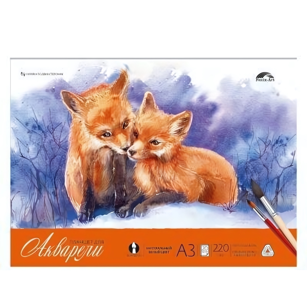 Планшет для акварели А3 20л, мягкий переплёт, клеевое крепление "Лисички", 220 г/м²