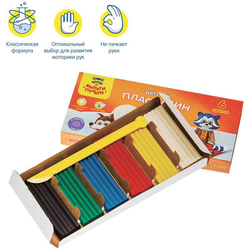 Практические детали: упаковка из картона с изображениями животных, содержит 6 цветных стержней пластилина и пластиковый инструмент, обеспечивает долгий срок использования, подходит для творчества дома и в детских садах.