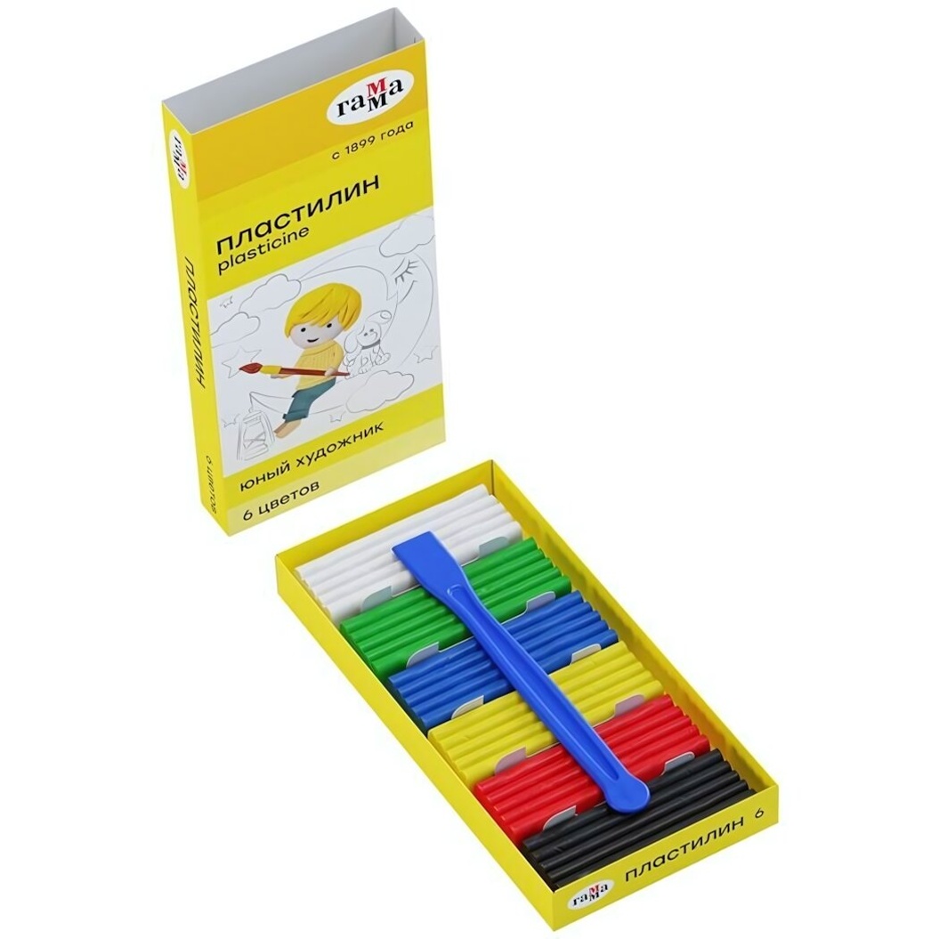Пластилин "Юный художник" 6 цветов, 84 гр, мягкий, не липнет, со стеком
