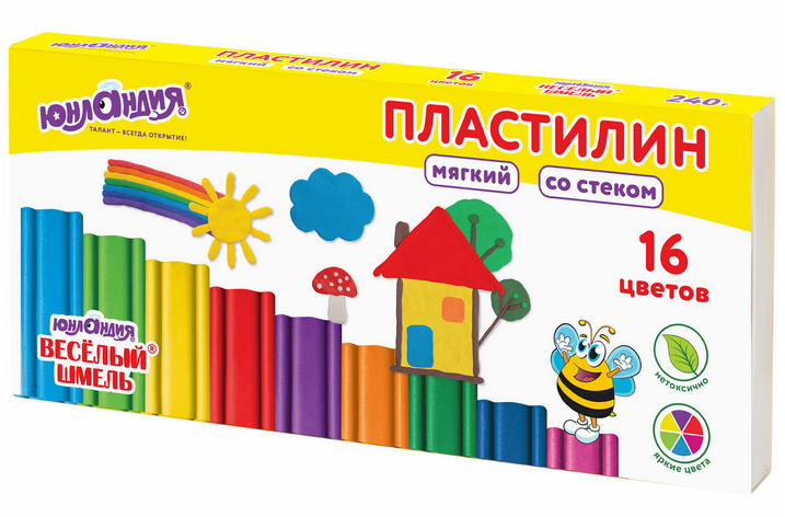 Пластилин мягкий 'Веселый шмель' 16цв/240г со стеком, яркий, нетоксичный