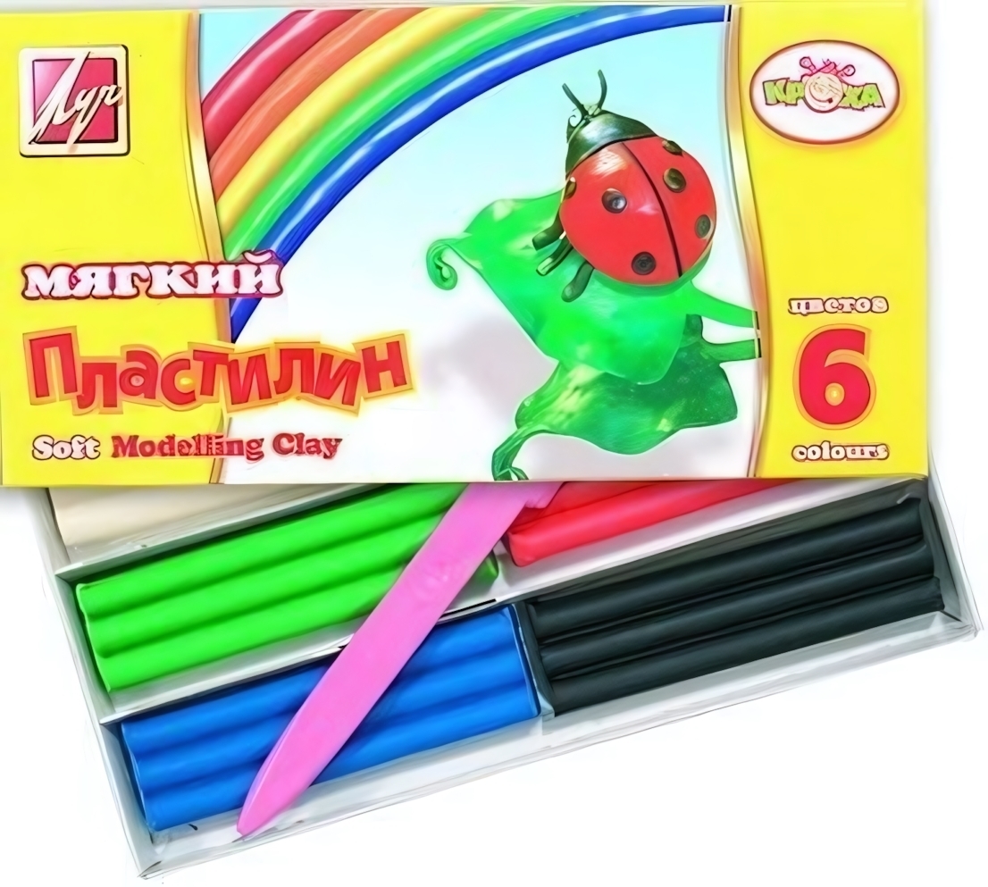 Пластилин мягкий "Кроха", 6 цветов, для лепки и рисования, Луч