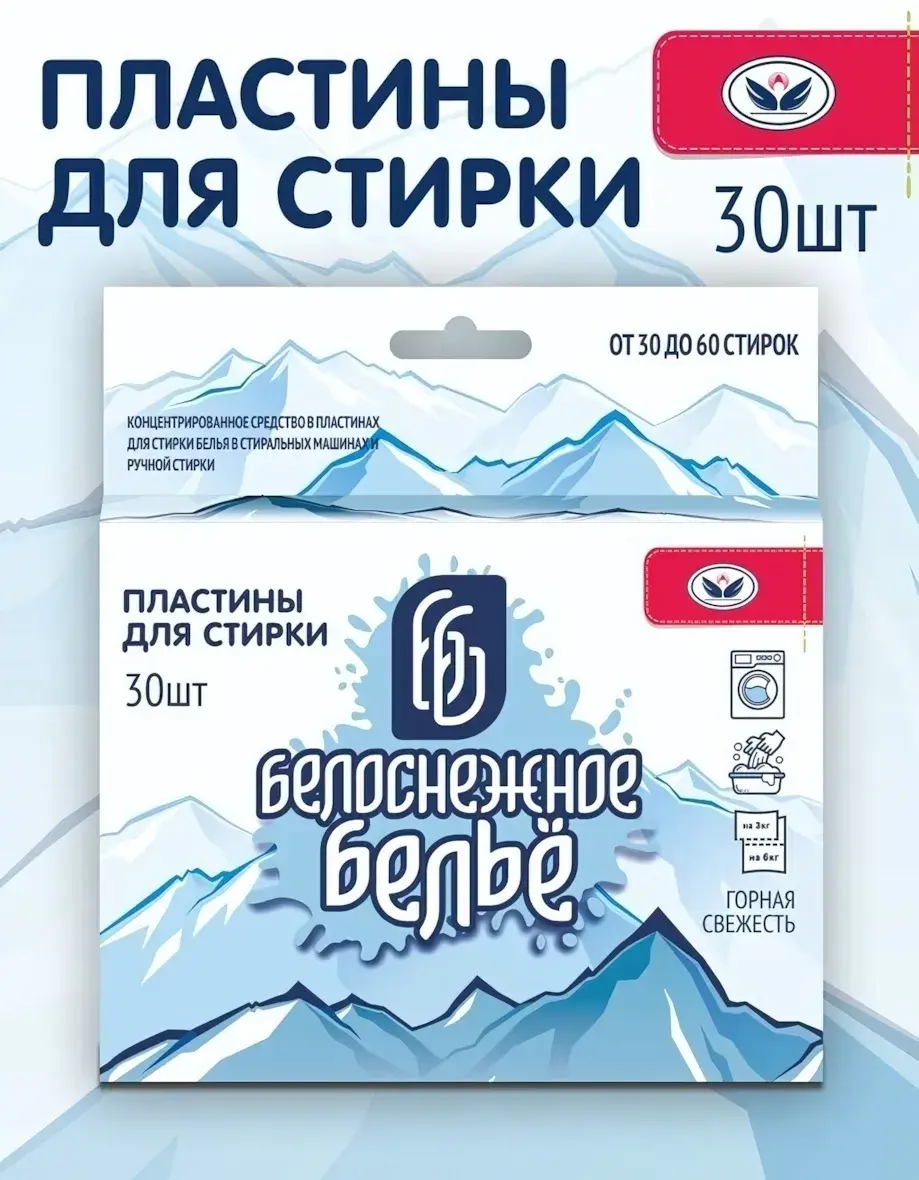 Пластины для стирки "Белоснежное бельё", 30 шт, горная свежесть