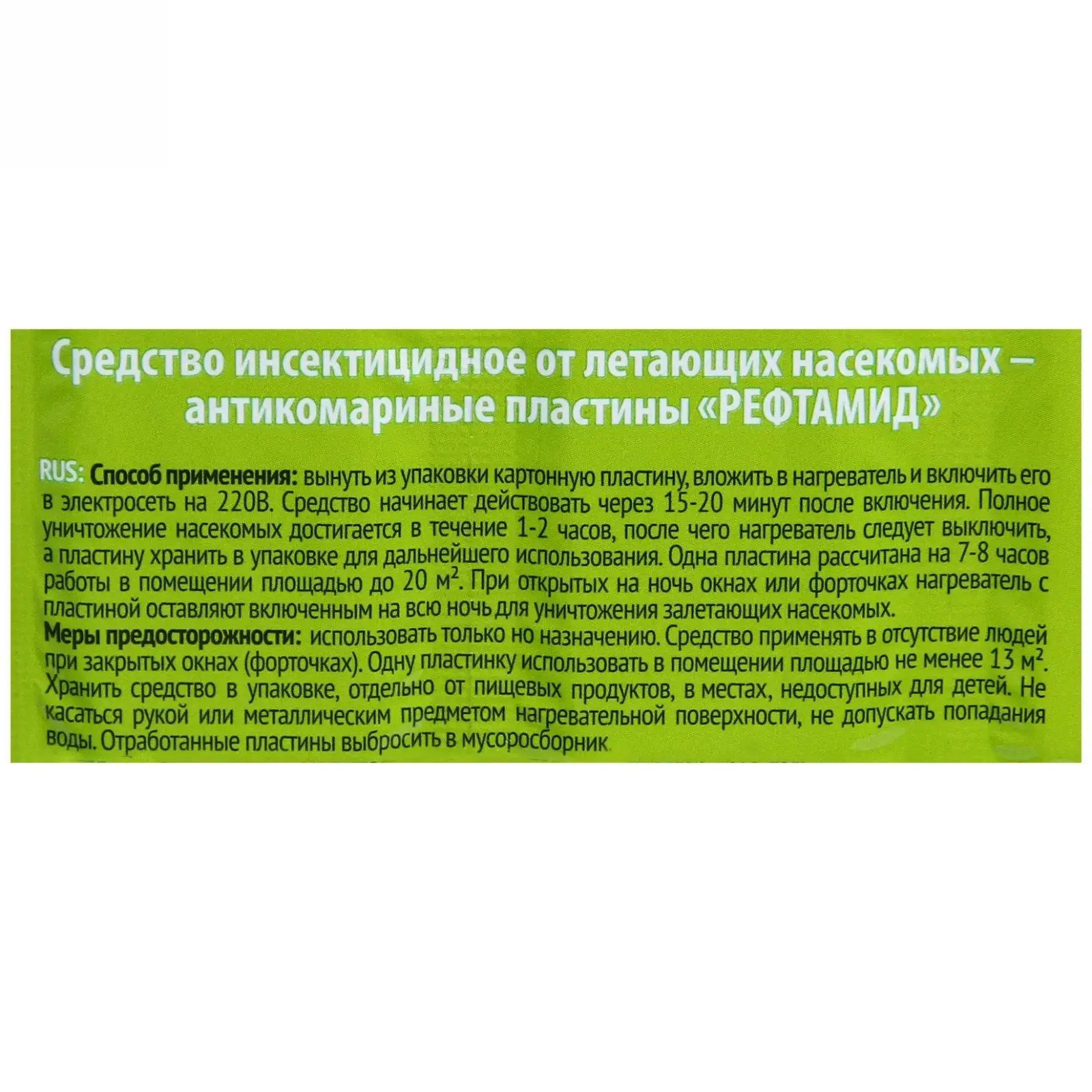Пластины от комаров «Рефтамид» 10 шт, без запаха, защита до 30 м², 10 часов работы