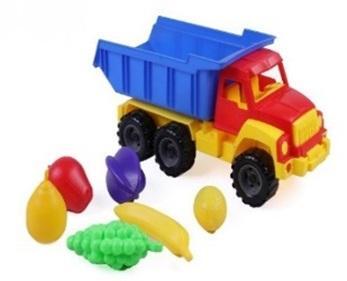 Игрушка предназначена для детей от 3 лет и подходит для игры как дома, так и на улице. В комплект входит грузовик и разнообразные пластиковые фрукты, которые малыш может размещать в кузове или использовать отдельно. Этот набор способствует развитию ручной моторики, воображения и познавательных способностей.