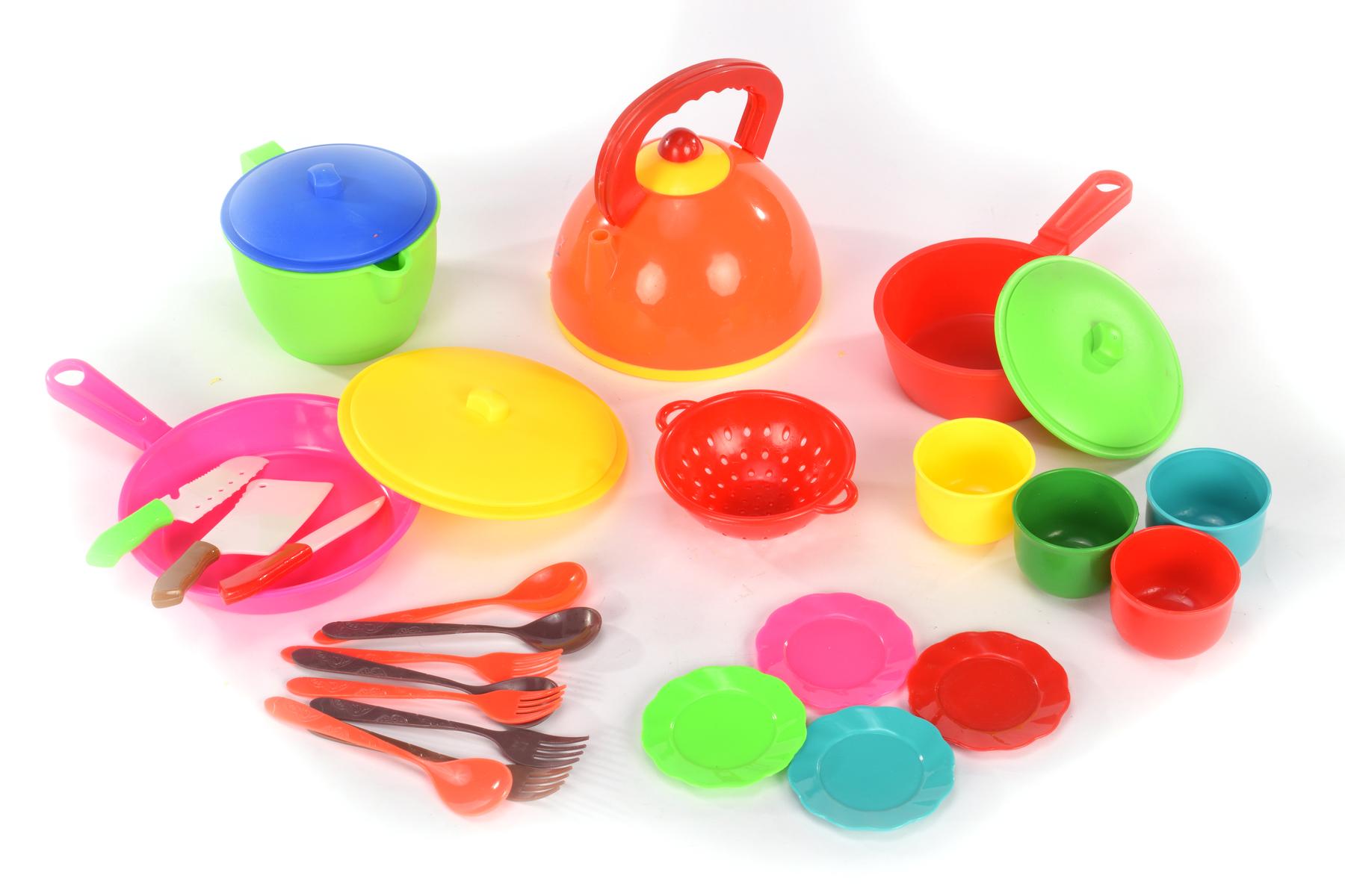 Безопасный пластик с закругленными краями специально разработан для детей от 3 лет. Яркие сочетания красного, голубого, зеленого и желтого цветов стимулируют визуальное восприятие. Легкие предметы удобно держать в маленьких ручках, а реалистичные формы создают эффект настоящей кухонной утвари.