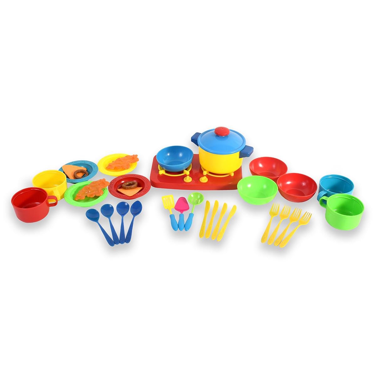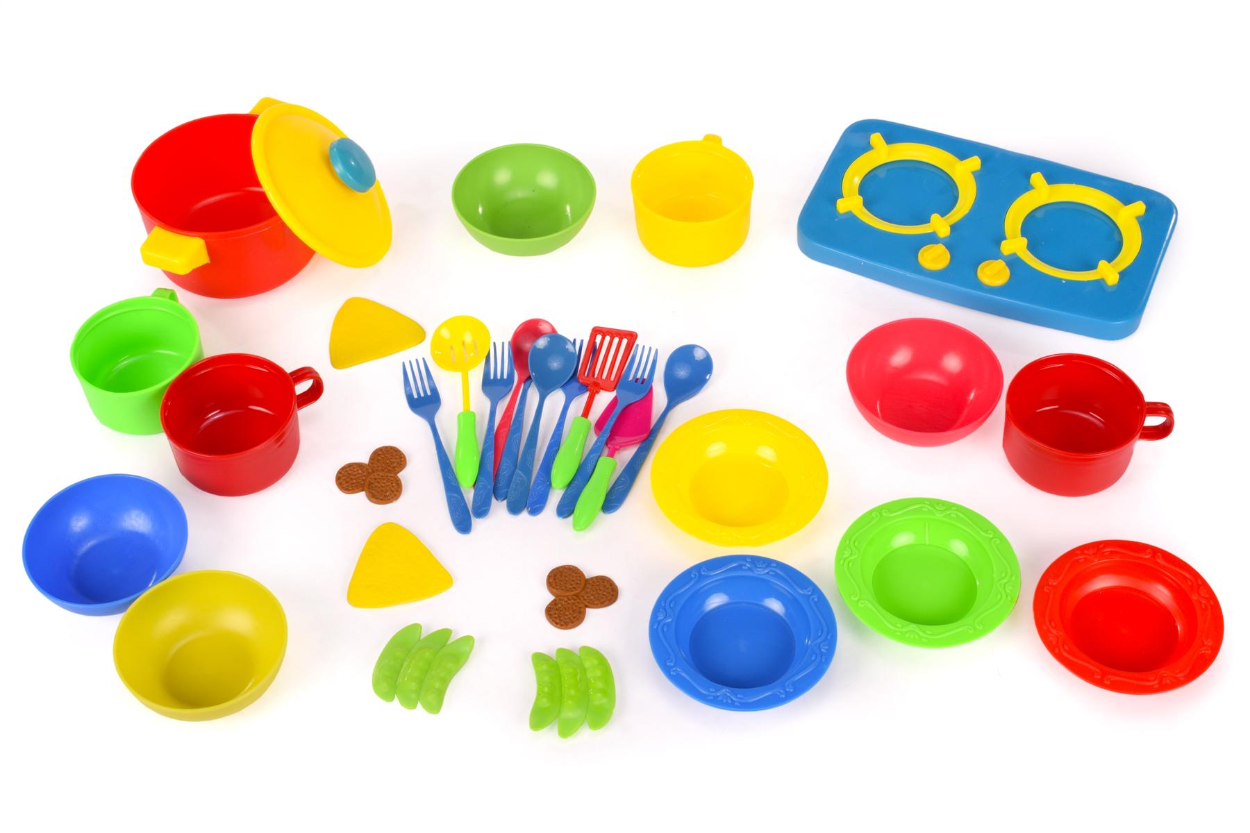 Подарите своей дочке возможность стать настоящей хозяйкой с этим удивительным набором игрушечной посуды! Яркие цвета и разнообразие предметов сделают игру увлекательной и развивающей. Набор включает 39 элементов, среди которых кастрюля с крышкой, глубокие чашки, тарелки, кружки и кухонные принадлежности. Это идеальный подарок для девочек от 3 лет, который поможет развить воображение и навыки готовки.