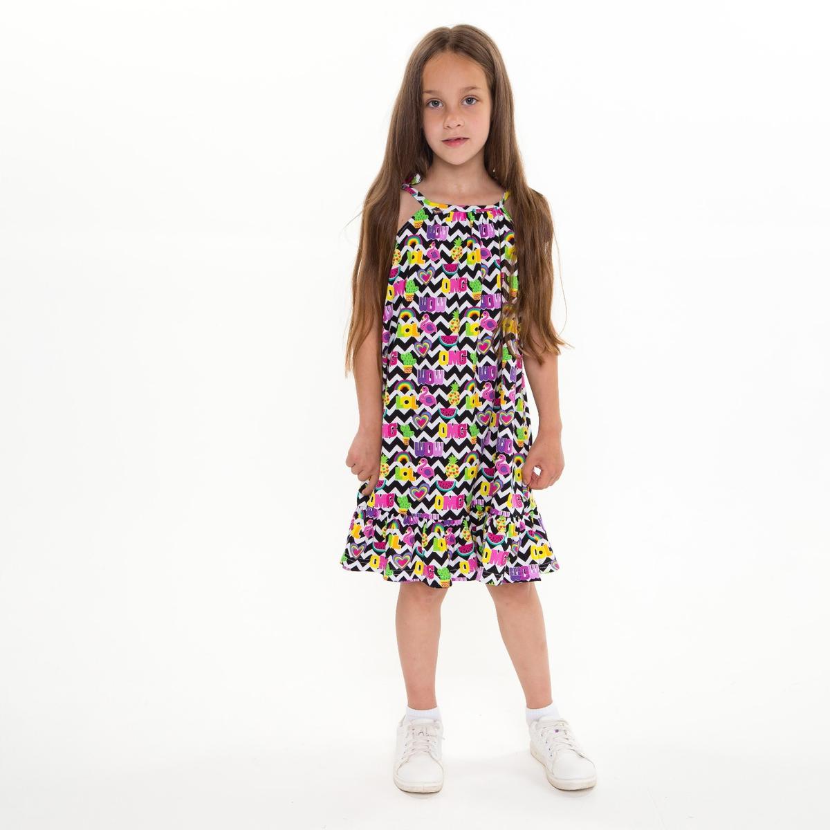 Платье для девочки "А.11-169-2", 100% хлопок, черный/белый, р.104