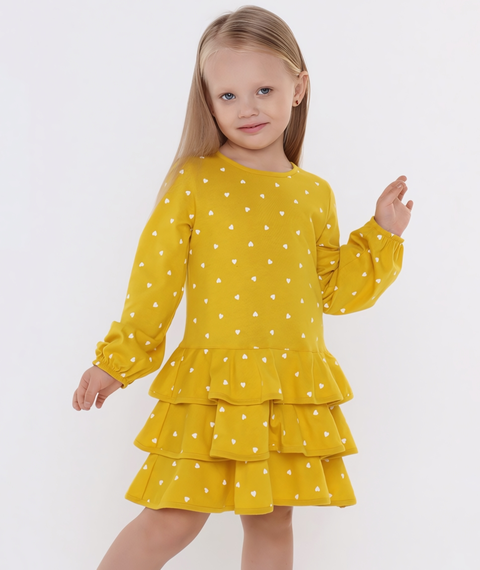 Платье для девочки 'А.9-46-2', горчичный, р.122, 100% хлопок, с рюшами