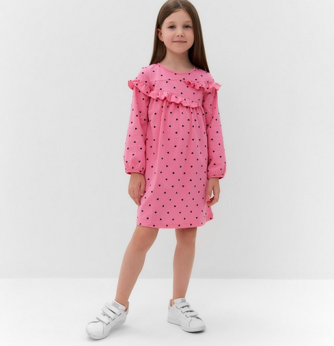 Платье для девочки Luneva, розовое в горошек, рюши, хлопок, размер 104