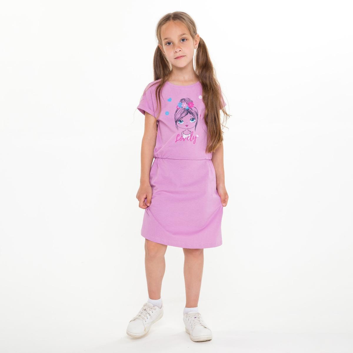 Платье из 100% хлопка, комфорт и воздух, длина 128 см, сиреневый, детский принт «Lovely», одноразмерное