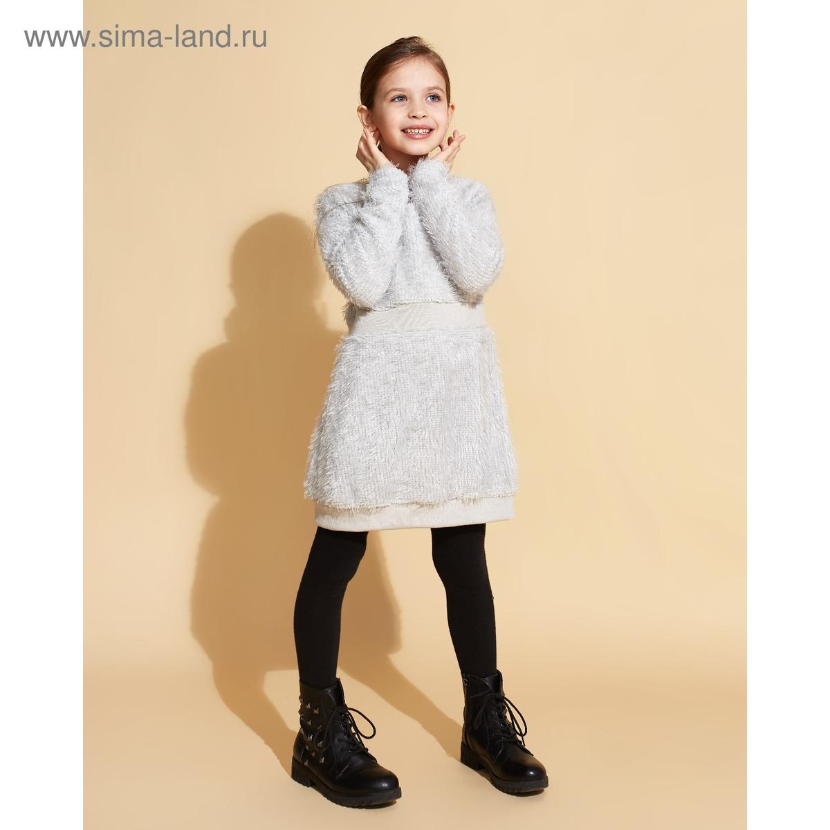 Размер: 128‑134 см (подходит девочкам ростом около 4‑6 лет). Материал: 100 % хлопок. Цвет: серый, оттенок напоминает мягкий ворс.
