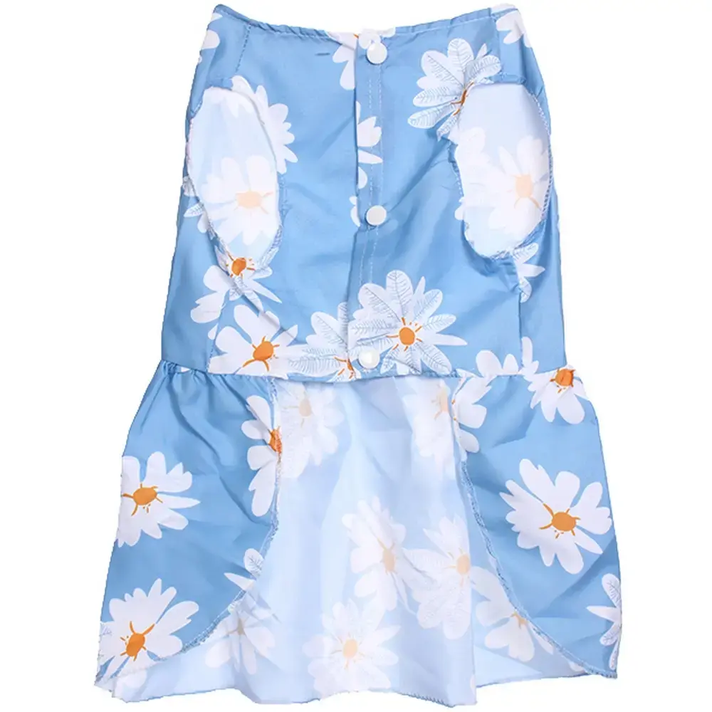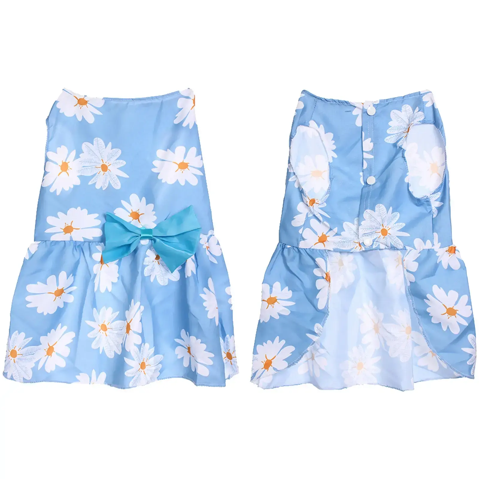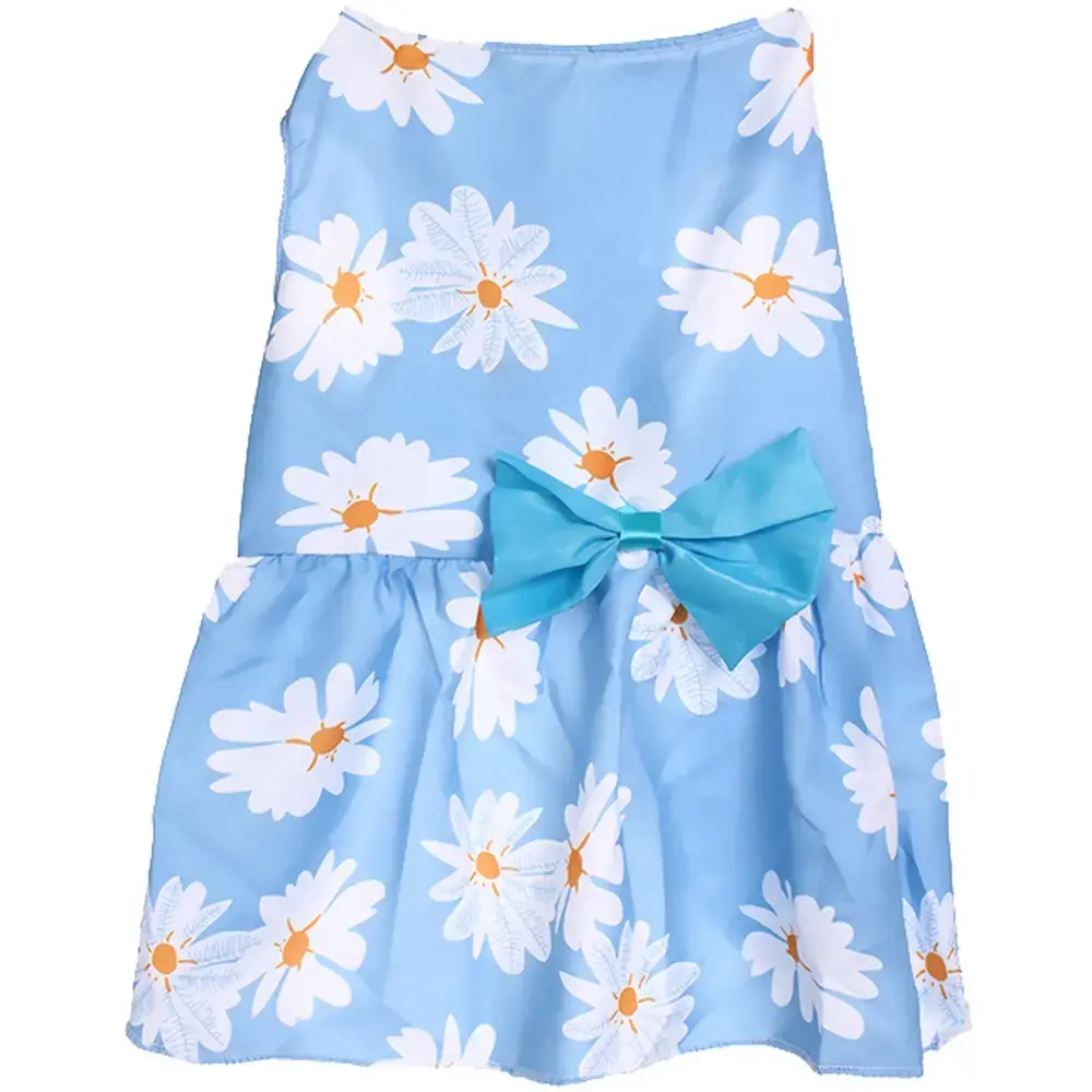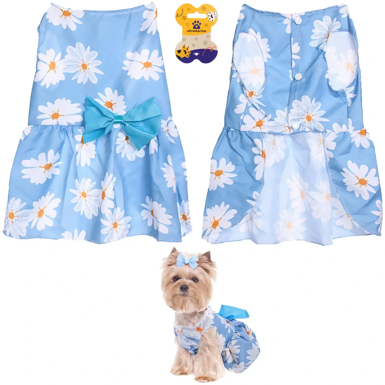 Платье «Бонита на прогулке» выделяется своим ярким голубым цветом с белыми ромашками и оранжевыми центрами, что придаёт ему свежий и весёлый вид. Большой бантик на талии добавляет изюминку и делает наряд ещё более привлекательным. Многослойная юбка придаёт платью пышность и стиль, а свободный крой позволяет вашему питомцу свободно двигаться.