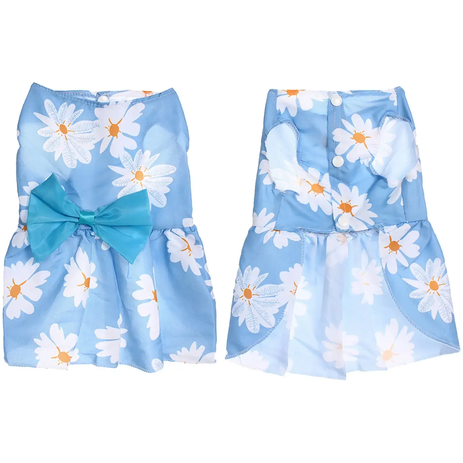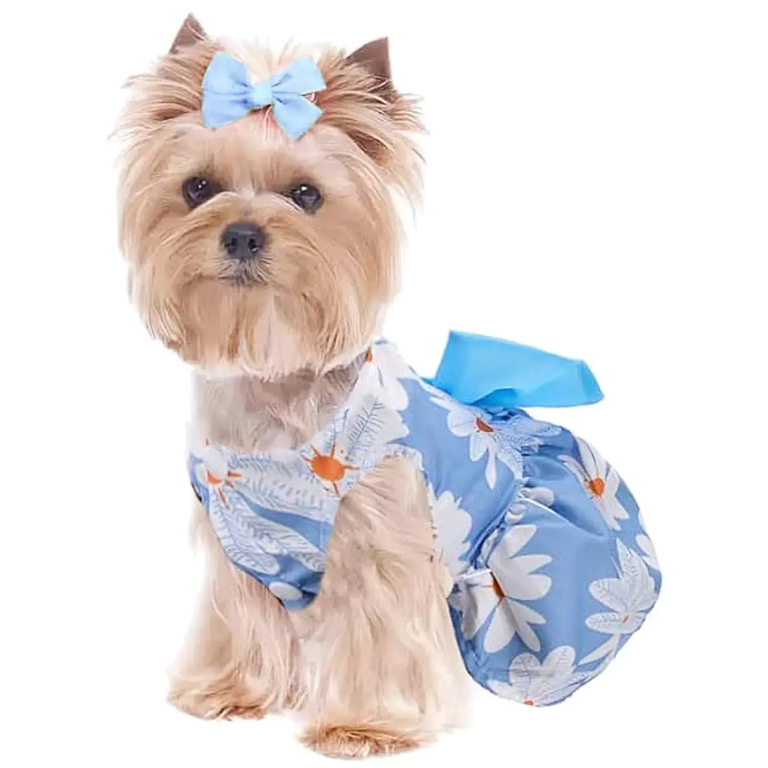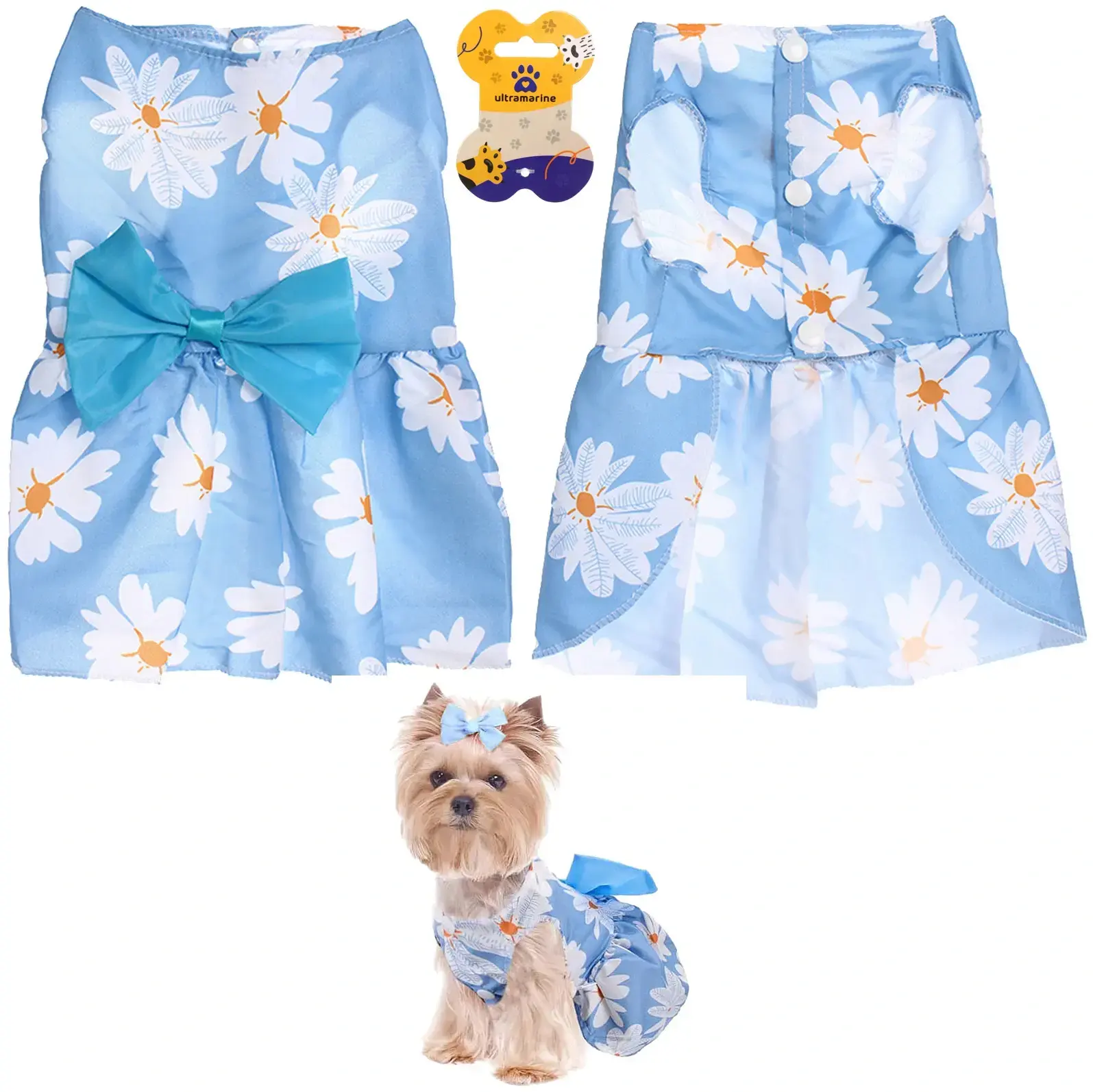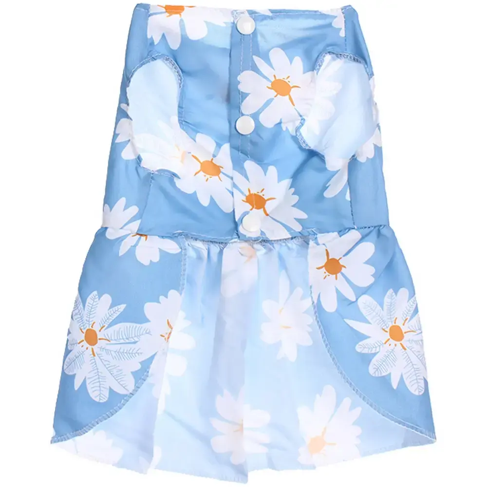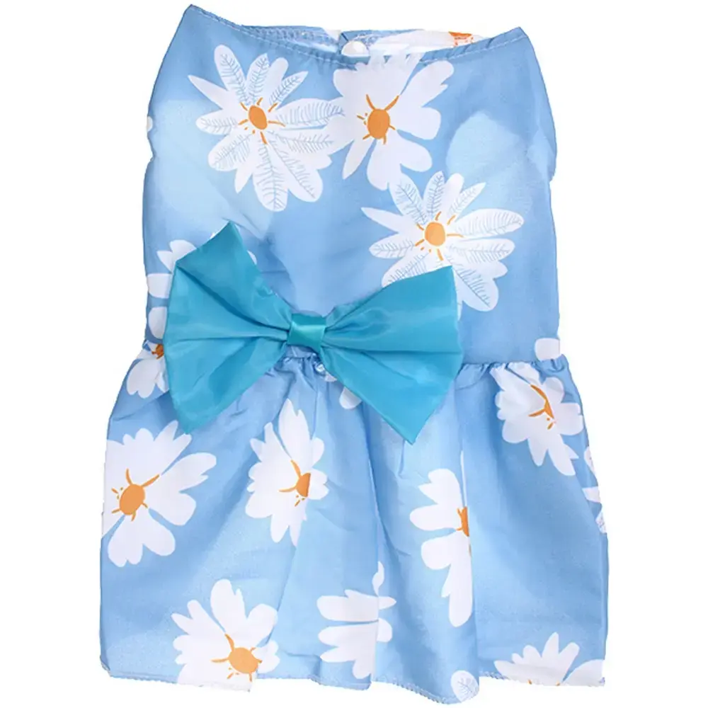 Размер M подходит для собак с длиной спинки 27-29 см. Платье выполнено в голубом цвете с белыми ромашками и оранжевыми центрами, что придает ему свежий и нарядный вид. Бант на талии добавляет изюминку и делает образ завершенным. Это платье станет отличным дополнением к гардеробу вашего питомца!