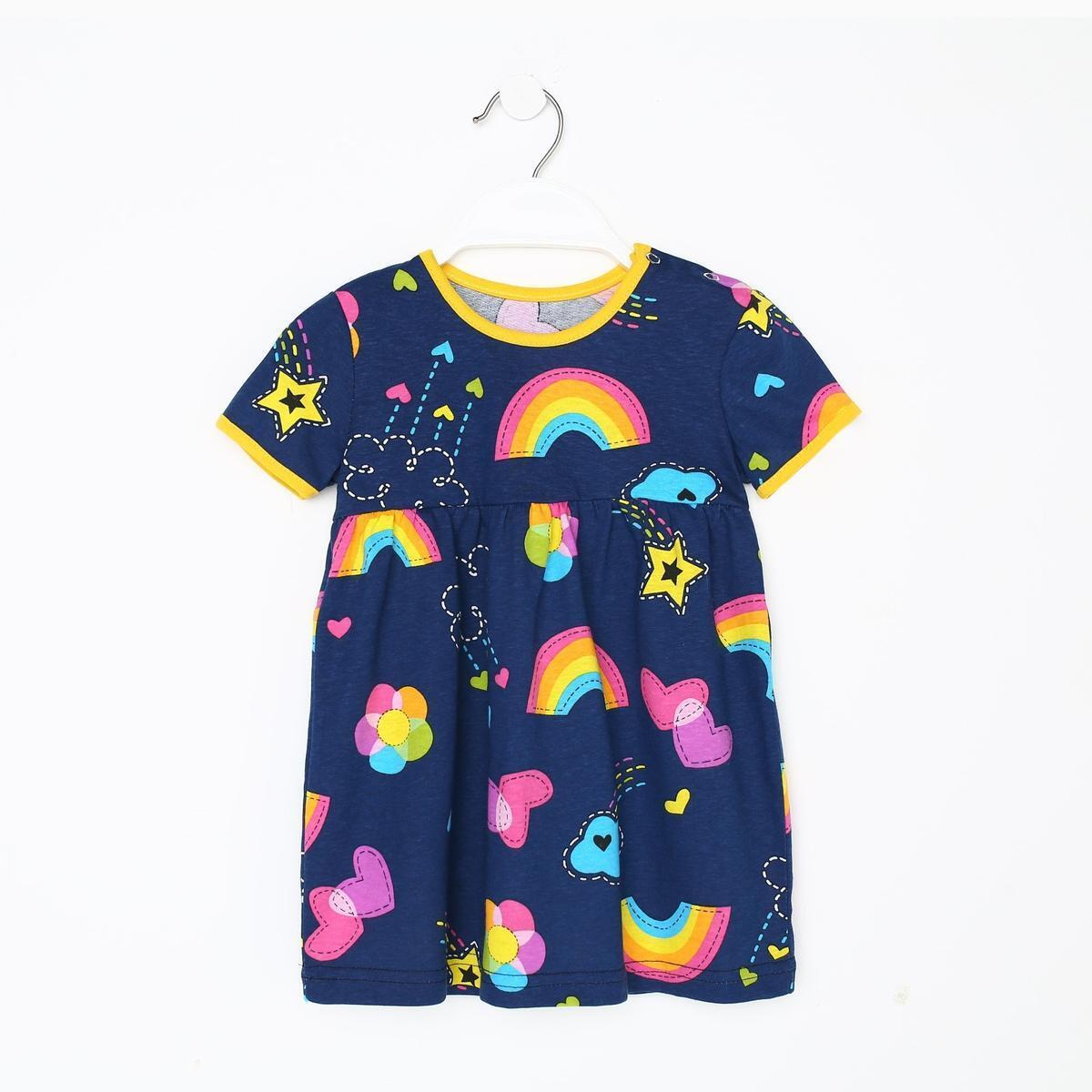 Платье детское "Дюймовочка" синее с радужным принтом, хлопок 100%, р. 92
