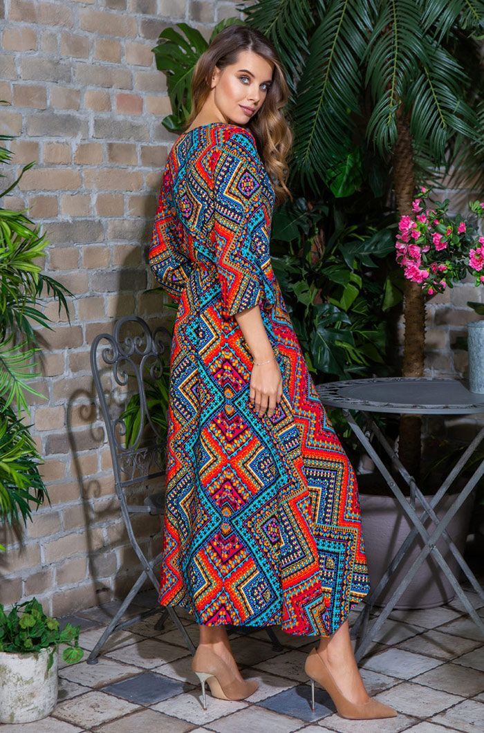 Это платье идеально подходит для женщин, которые хотят выглядеть стильно и чувствовать себя комфортно в любой ситуации. Оно отлично сочетается с туфлями на каблуке для вечернего выхода или с балетками для прогулки по городу. Длина макси и свободные рукава ¾ обеспечивают свободу движений и комфорт в носке.