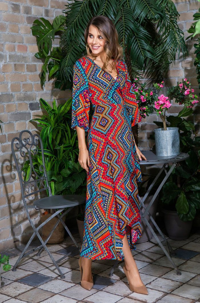 Это платье подходит для различных мероприятий: от вечерних выходов до повседневных встреч с друзьями. Благодаря V-образному вырезу и свободным рукавам длиной ¾, оно обеспечивает максимальный комфорт и свободу движений. Платье легко комбинируется с различными аксессуарами и обувью, что позволяет создавать уникальные образы.