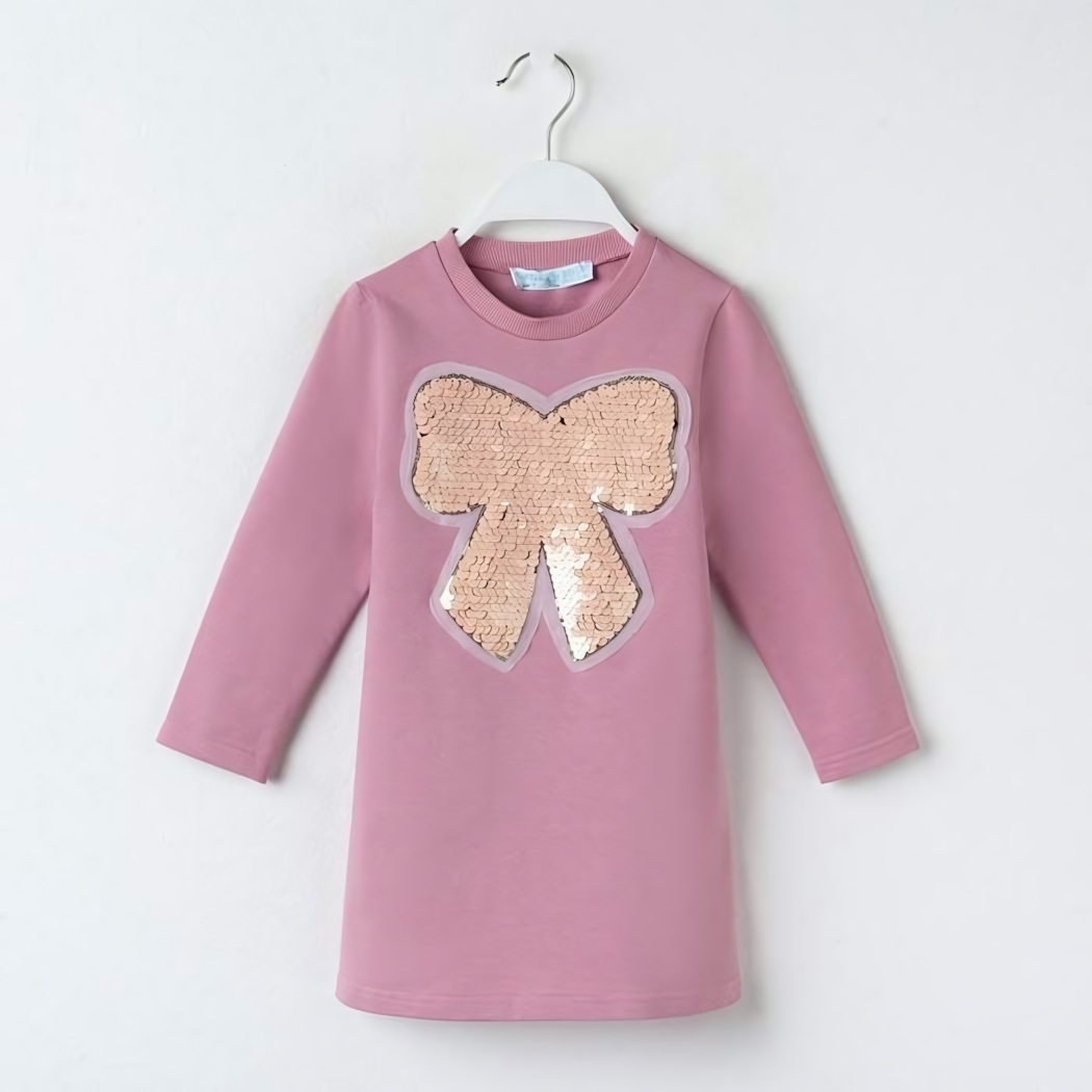 Подарите своей дочке ощущение лёгкости и уюта: мягкий хлопковый трикотаж, яркий розовый цвет и блестящая аппликация‑бант делают каждый день особенным.