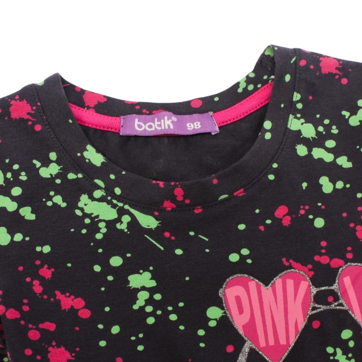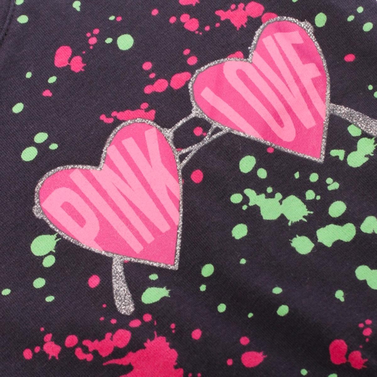 Хотите найти удобное и необычное платье для девочки? Эта модель сочетает комфорт натурального материала и эффектный дизайн: ткань из 100% хлопка идеально подходит для чувствительной детской кожи, а яркий принт "PINK LOVE" с разноцветными акцентами сразу выделяет обладательницу из толпы.
