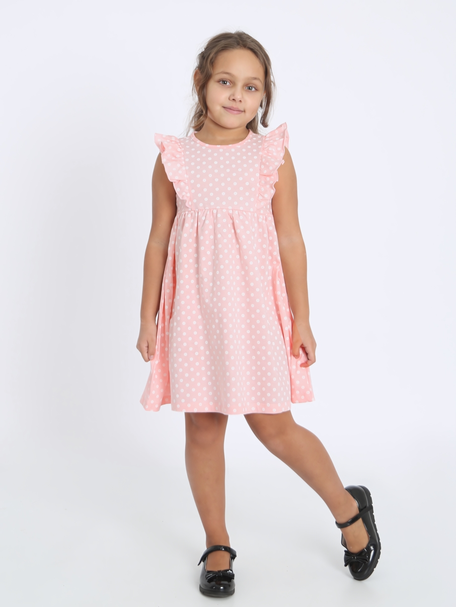 Платье 'Кружок-8' в нежном пудровом цвете — это идеальный выбор для жаркой погоды. Оно выполнено из легкой и дышащей кулирки, что обеспечивает комфорт и свободу движений. Приталенный силуэт с юбкой на сборке придаёт платью игривый и стильный вид, а рельефы с оборками спереди и на спинке добавляют изюминку. Безрукавный дизайн и окантовка горловины и пройм делают его удобным для носки в тёплые дни.