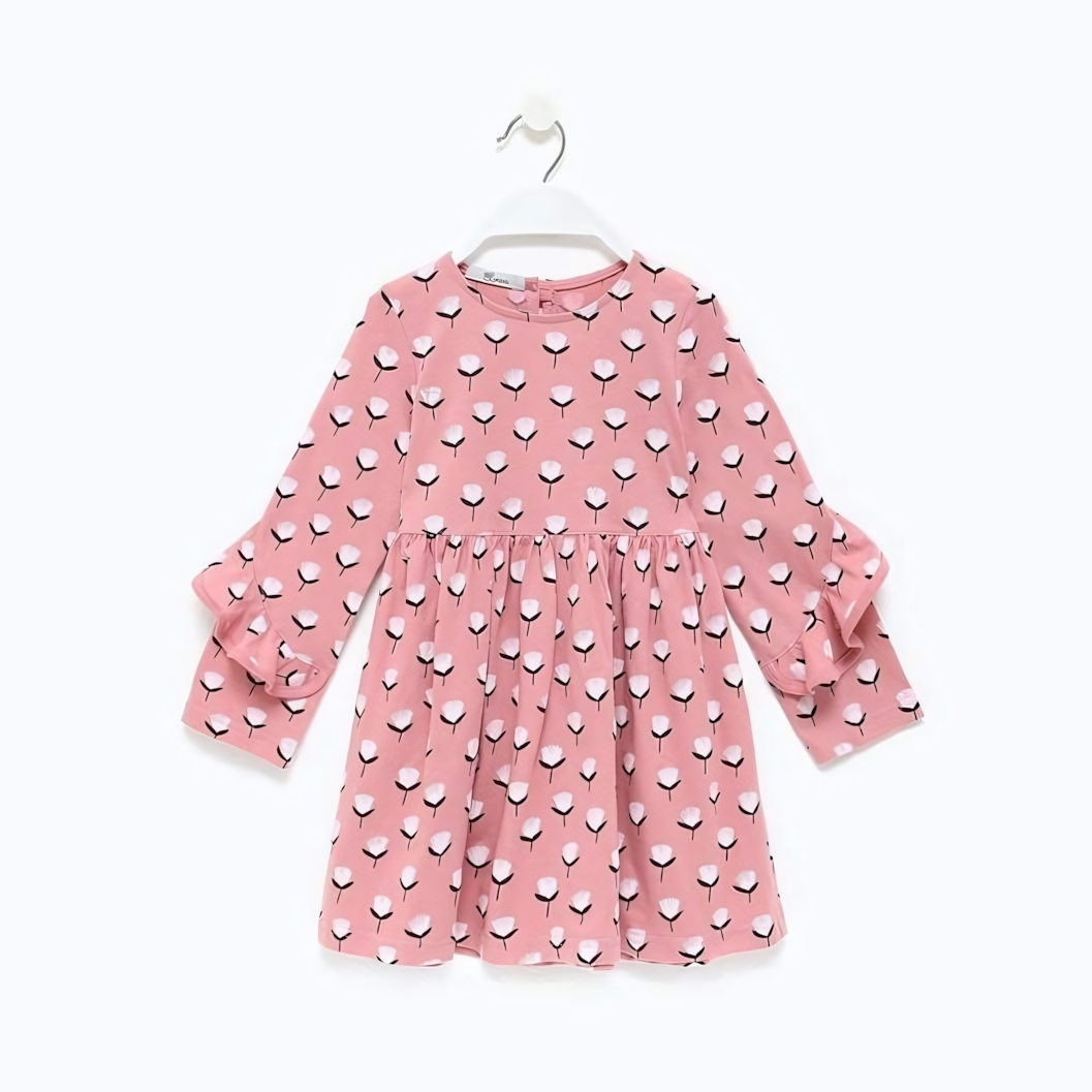 Платье детское Luneva из хлопка, тёмно-розовое с цветочным принтом, длинный рукав, размер 134