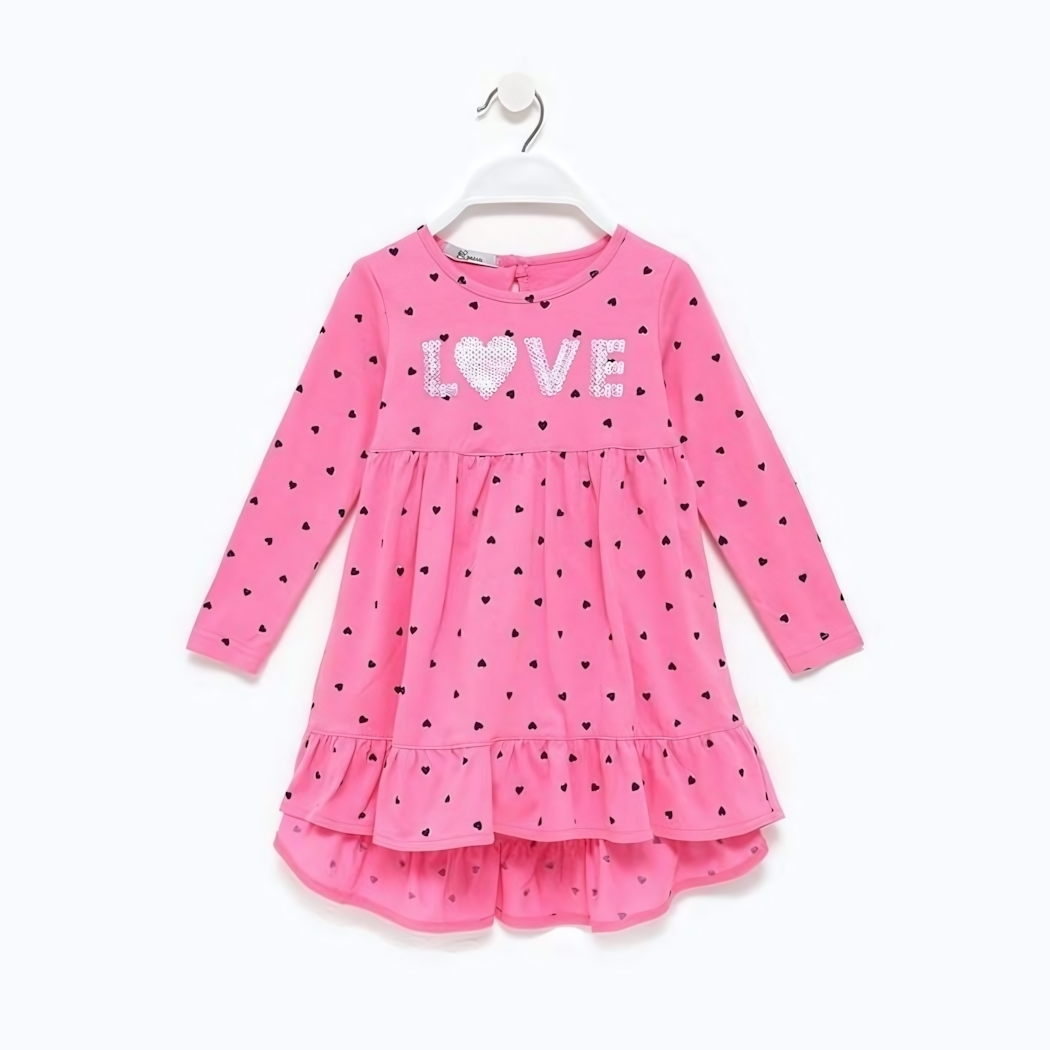 Платье для девочки Luneva, розовое с сердечками, длинный рукав, хлопок 100%, р.122