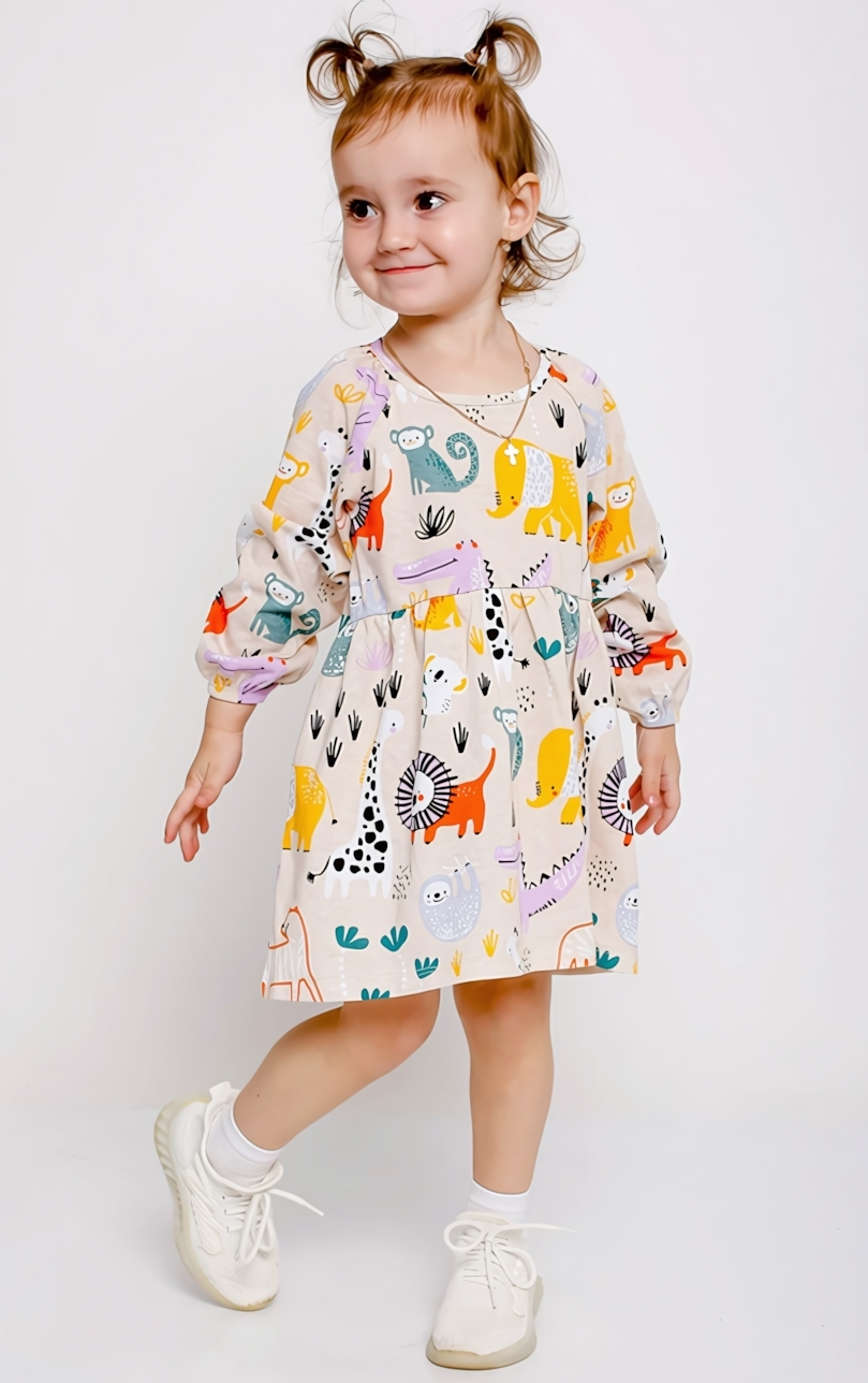Подарите своему ребёнку ощущение свободы и радости каждый день – лёгкое хлопковое платье «нана-7» сочетает дышащий материал, гипоаллергенность и яркий многоцветный принт с изображением животных, что превращает обычную прогулку в маленькое приключение.